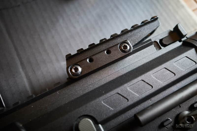ハイマウントのオープンサイトを覗くのに、野外でマグニファイアを使いたいと思ったら、UNITYのマウントがちょうど良かったので取り付けてみた。マグニファイアは手で回せるネジなので、屋内フィールドの時は簡単に取り外せるのだけど、マウントはレンチが無いと外せないので常設にしたい。だが、この安っぽい黒い感じが気に入らない。
