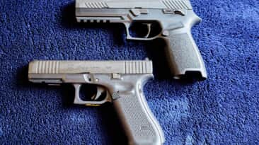 東京マルイ最新のガスブローバックハンドガン二機種を並べてみました。P320 とグロック17 Gen5...