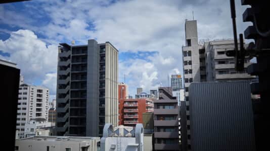 朝の数時間だけ陽の当たるベランダ。夏の雲がもくもく。最近ここでコーヒーを飲むのが朝の日課。