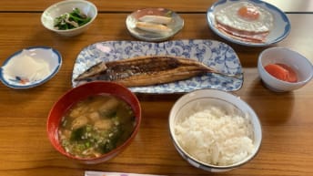 9時出船なので、ゆっくり朝飯。やっぱり秋刀魚小さいね。