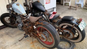 ハーレーかと思ったら国産だった。完全に錆びてオブジェと化し...